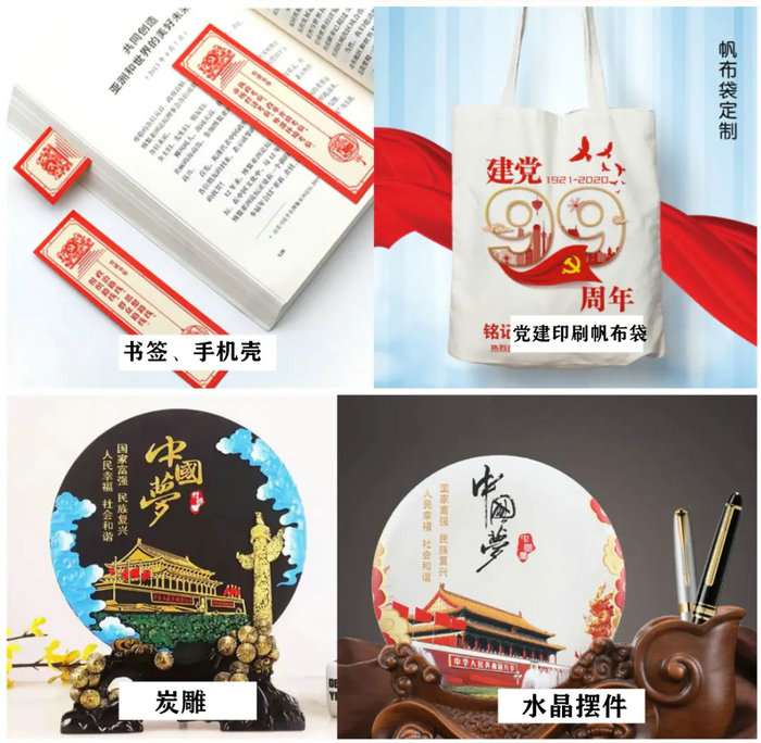 除了傳統(tǒng)的宣傳媒介,各種印有黨慶主題圖案的紀(jì)念品,也存在很大的需求。這對工藝品、精品、禮品的生產(chǎn)廠商來說,也是一個難得的業(yè)務(wù)的增長點(diǎn)。工業(yè)UV打印機(jī)在這塊自然也成為制作這些產(chǎn)品的利器。
